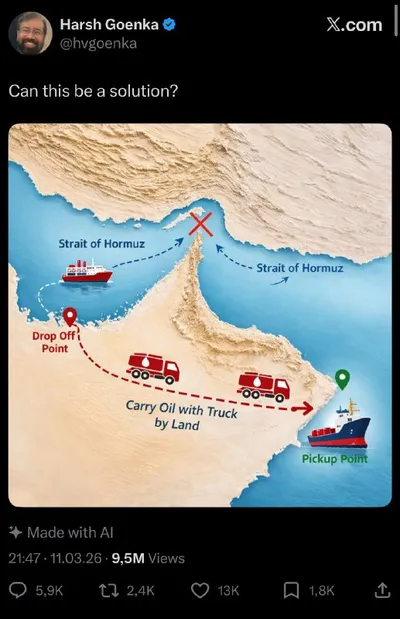 Вопрос решён! Всего-то надо 25% мировых поставок нефти перевезти через пустыню несуществующими грузовиками по простреливаемой трассе. К слову сказать, автор гениальной идеи - не какой-то там диванный