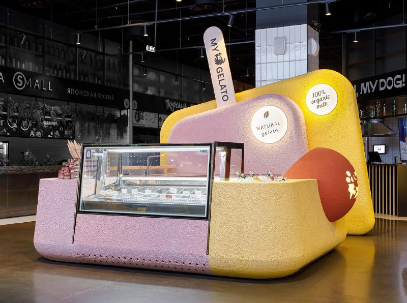 Архитекторы бюро MARAT MAZUR interior design получили необычный заказ – разработать дизайн киоска для продажи мороженого My Gelato в одном из торговых центров, который был бы эффектным, образным, удоб