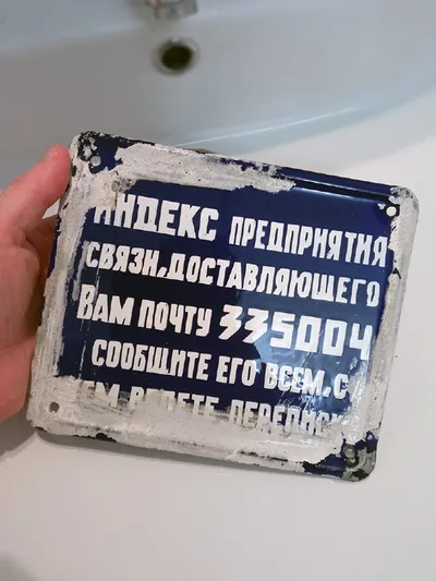 Проходят годы, но ультрамарин табличек с индексами почтовых отделений всё так же ярок. Вешали их примерно в семидесятые. Эта табличка была спасена их расселённого дома, которому уготован снос. А где о