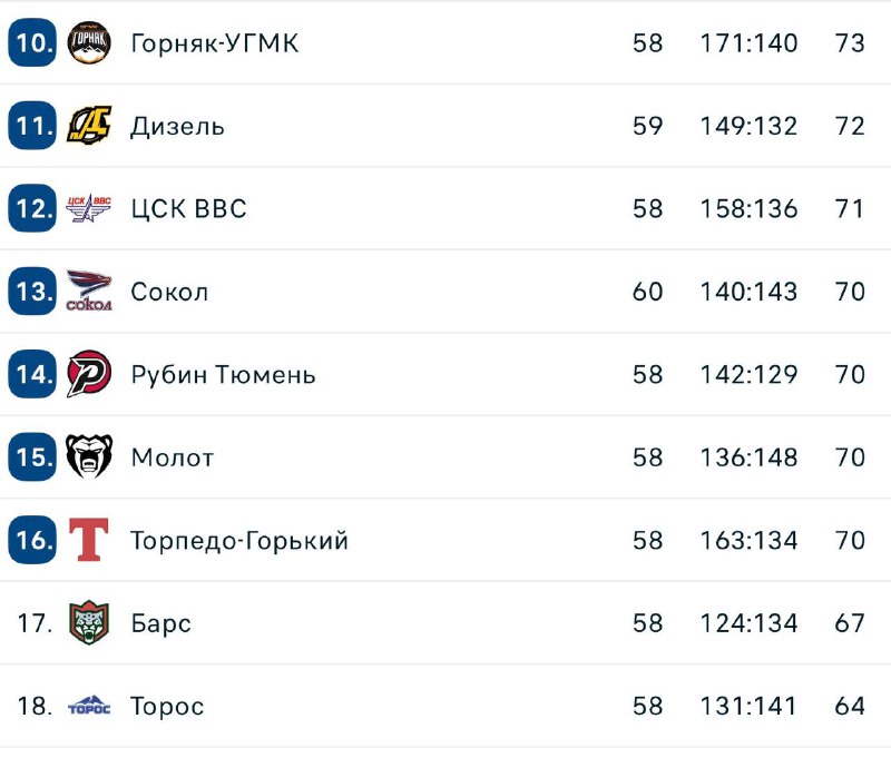 «Барс» и «Торос», похоже отваливаются от гонки за плей-офф. Поражения в Самаре и Ижевске могут стать для татар и башкир роковыми. Проходной бал за плей-офф в нынешнем сезоне будет 72 очка?