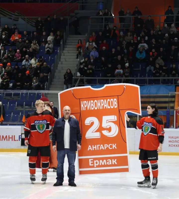 В Ангарске отдали дань заслугам Сергея Кривокрасова. Майка форварда была поднята под своды ледовой арены «Ермака»