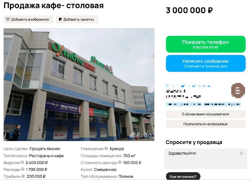 Ресторан «Оливье» выставили на продажу за 3 млн рублей ❗️ Именно в этом заведении отравились дети из хоккейной команды. «Оливье» продают как готовый бизнес с 10 сотрудниками. В объявлениии указано,