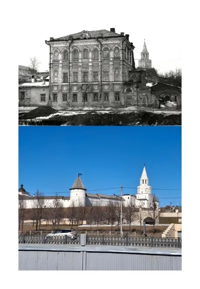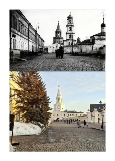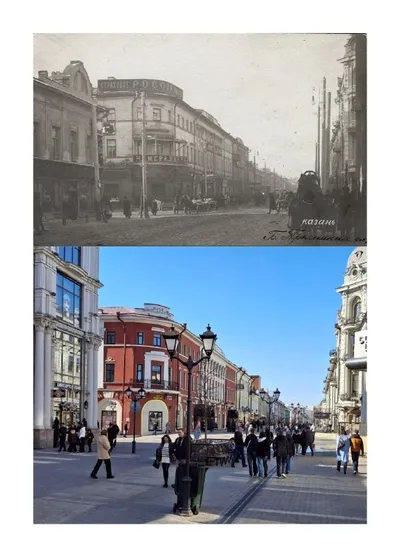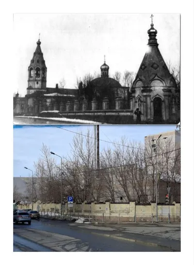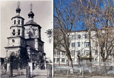 Улица Гладилова (бывшая Архангельская). На современной фотографии — средняя школа №81. Она стоит на месте разрушенного Смоленско-Димитриевского храма. Это была одна из красивейших староказанских цер