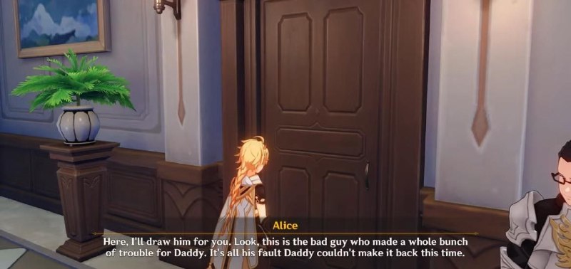 Для тех кто пропустил разговор Кли и Алисы Алиса нарисовала злодея (Дотторе), чтобы показать Кли, из-за кого её отец не смог приехать. А Кли сказала, что Дотторе надо взорвать И где она неправа? #м