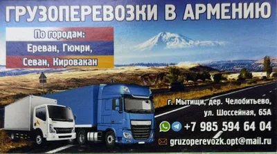 Транспортная компания предоставляет услуги грузовых перевозок в Армению. Организуем доставку грузов различной сложности с полным сопровождением на всех этапах. Условия работы: — прямое взаимодействие