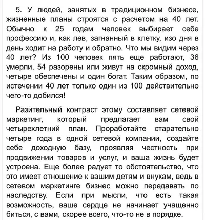 Когда люди боятся сетевого бизнеса - они просто боятся каких-то убеждений в своей голове. А ещё боятся работы. Потому что в сетевом не прокатит просто прийти и собирать пасьянс в офисе за 60 тыс. При