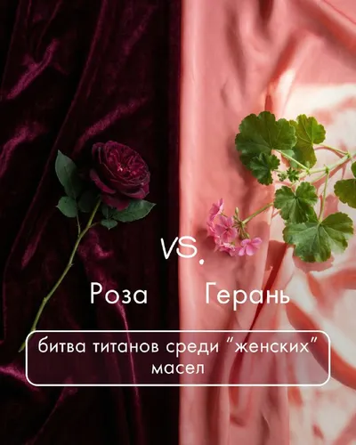 «Битва титанов: Роза vs Герань»: сравнение двух «женских» масел 🌷 Два королевских аромата, два символа женственности. Но под одинаковым ярлыком «для женщин» скрывается разная химия, разный характер