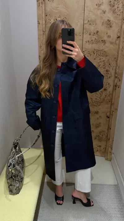Прямиком из примерочной на Покровке — новинки из коллекции «У самого синего моря», которые вы могли пропустить! На Варе: 🟢Плащ из итальянского атласа в глубоком синем оттенке (26.900 руб.) 🟢Крас