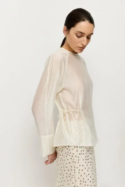 Новинка! Блуза из вуали (10.900 руб.) наконец в наличии🤍 Актуальный в этом сезоне силуэт: округлые рукава-реглан и акцент на талии за счет боковых завязок, которые можно и подрасслабить. На манжет