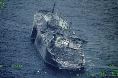 Российский газовоз, несмотря на серьезные повреждения, все еще не затонул в Средиземном море.