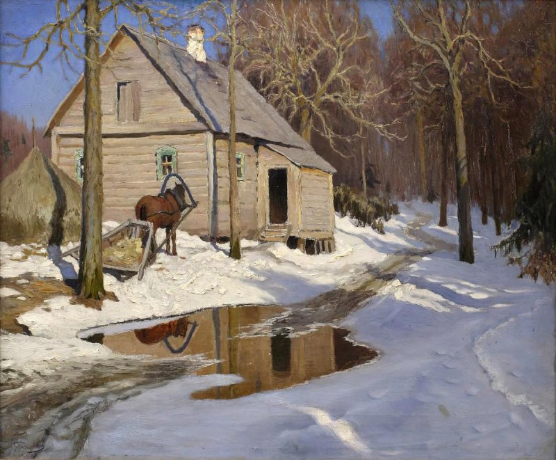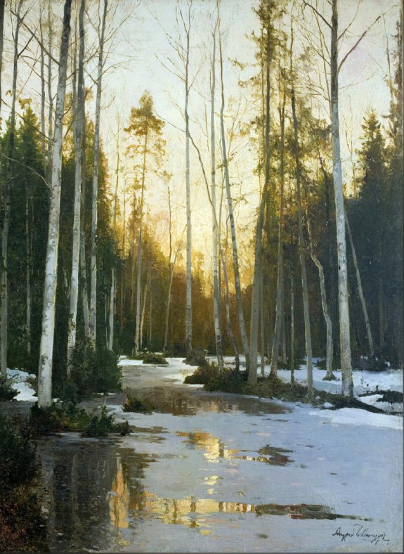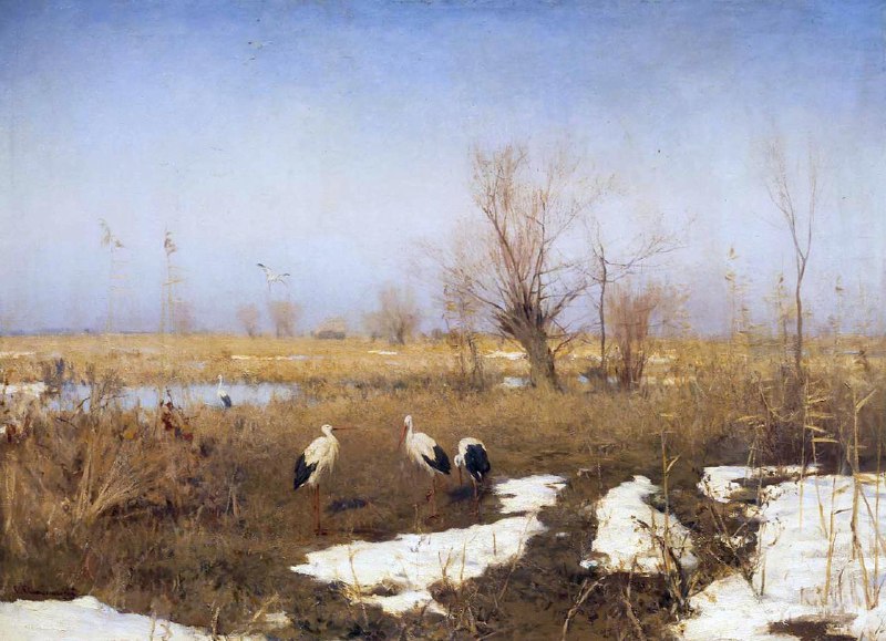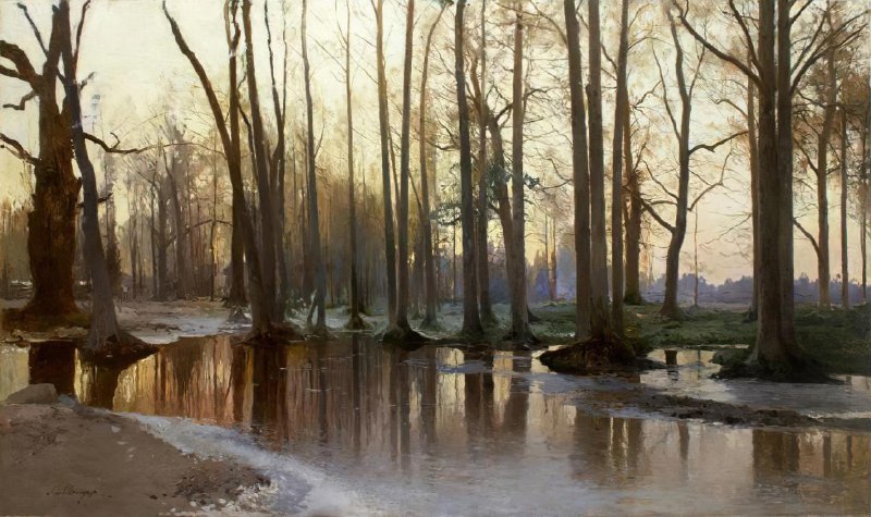 «Ранней весной», конец XIX века Холст, масло, 94 × 160 см — Шильдер Андрей Николаевич (1861 - 1919) 📍 Рязанский государственный областной художественный музей им. И.П. Пожалостина. Пейзажная живоп