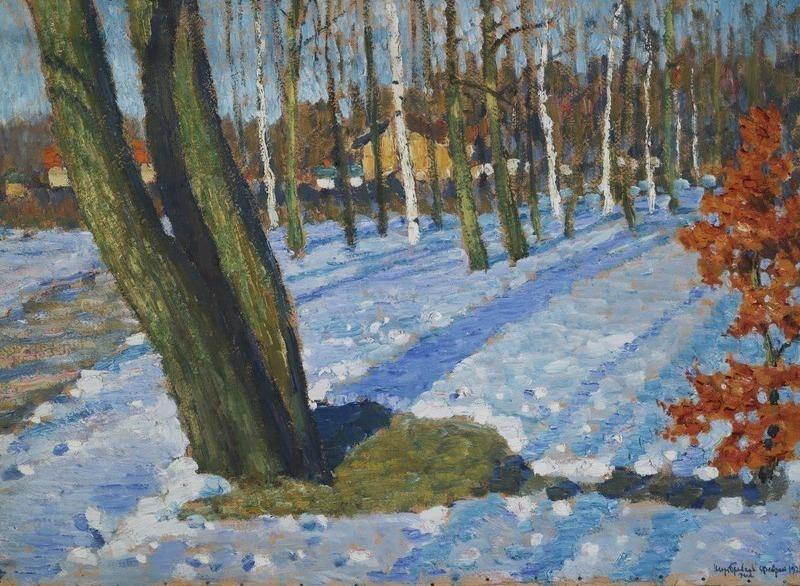 «Мартовский снег», 1921. Картон, масло, 51 × 69 см — Грабарь Игорь Эммануилович (1871–1960) 📍 Государственная Третьяковская галерея, Москва. Пейзажная живопись🕊