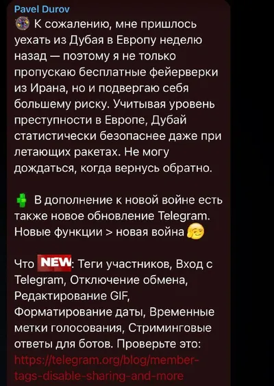 Дуров между строками про войну, решил рассказать про новые функции в тг 😁