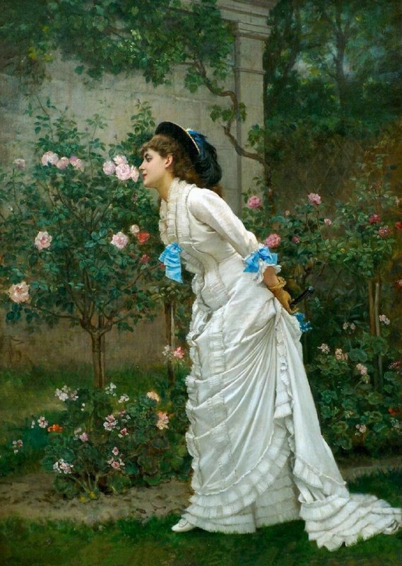 «Женщина и розы», Огюст Тулмуш (1879) Огюст Тулмуш был французским художником, известный своими роскошными портретами парижанок. Выставил свои первые картины в Парижском салоне в 1848 году, когда ему