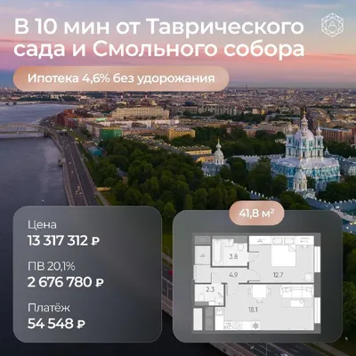 🔔Квартира в 10 минутах от Таврического сада и Смольного собора. Ставка 4,6% на весь срок! Нашли для вас низкую ставку по семейной ипотеке на весь срок без удорожания. Самое главное — это расположени
