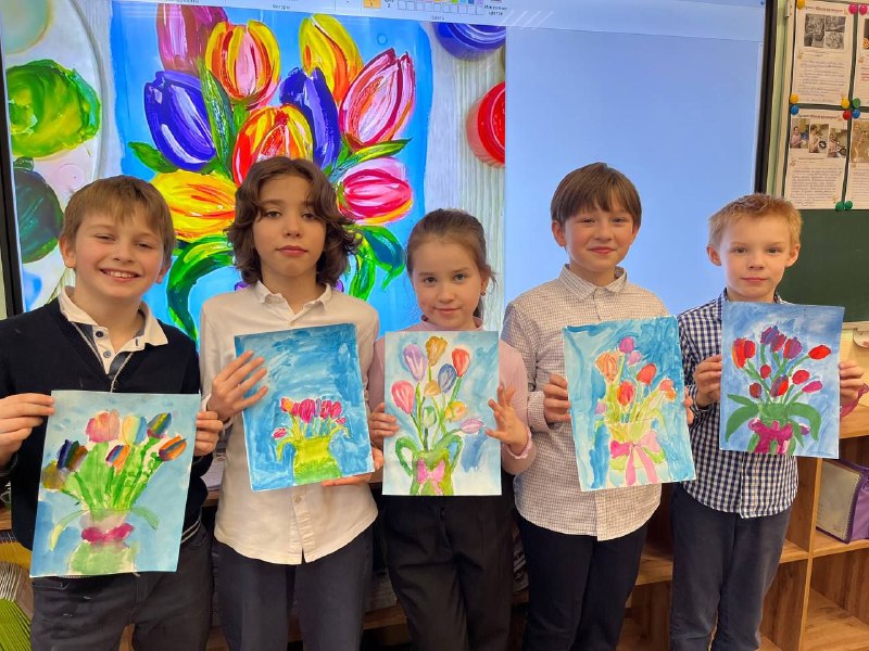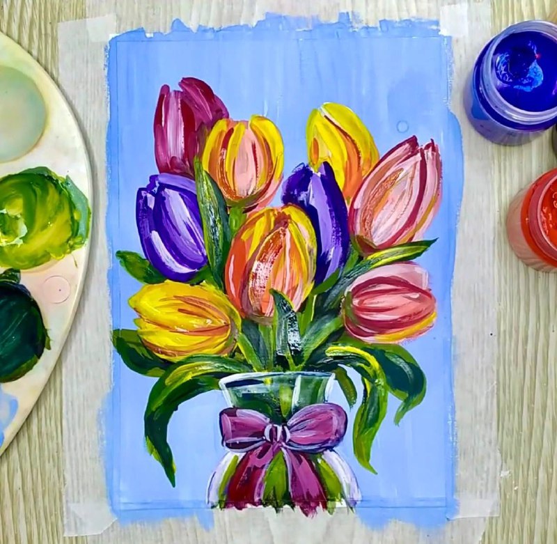Дарим себе весну! В ожидании 8 Марта предлагаем погрузиться в творчество. Нарисуем нежный букет тюльпанов гуашью — символ женственности, весны и праздника. Это идеальный способ создать настроение