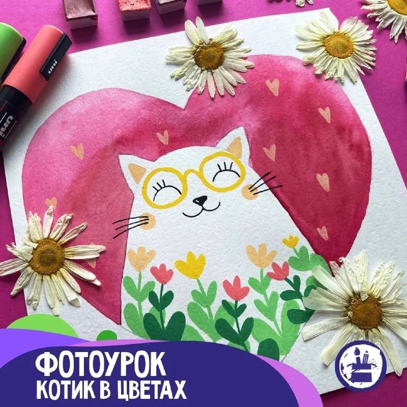 Хотите нарисовать милую открытку? Показываем, как изобразить очаровательного котика с цветами поэтапно. От простых форм к готовой праздничной иллюстрации! #туториалы Рисуем вместе с АртМалышами
