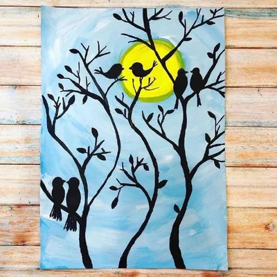 🌿🐦 Друзья, давайте создадим веселую весеннюю картину силуэтов ветвей цветущих деревьев, на которых сидят радостные птички и напевают свои весенние песни! 🎨🌸 Фон можно выполнить акварелью, а ветви