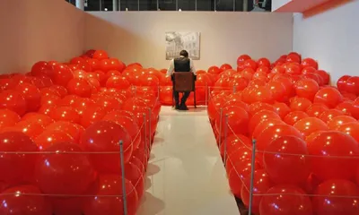 Candy Chang School of the Future, 2013 Инсталляция включала 1000 надувных шаров, а также центральный пандус, ведущий к столетней антикварной школьной парте. Посетители могли сесть за эту парту и поде