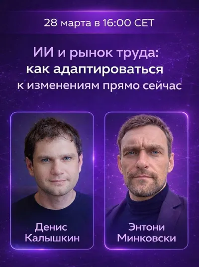 Напоминаю, что сегодня 28 марта в 16:00 CET я провожу живой мозговой штурм на тему «ИИ и рынок труда: как адаптироваться к изменениям прямо сейчас» Вы думаете, что из-за ИИ в своей профессии вы може