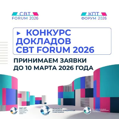 КОЛЛЕГИ! СЕГОДНЯ ПОСЛЕДНИЙ ДЕНЬ! 🎇 В преддверии XII Международного форума Ассоциации когнитивно-поведенческой психотерапии CBT FORUM 2026 продолжаем приём заявок на конкурс докладов! Обращаем ваше в