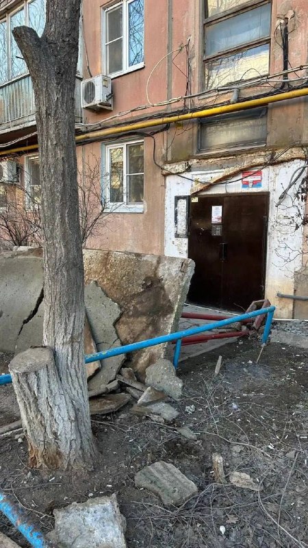 ❗️В Астрахани упал козырёк третьего подъезда на бэра 57