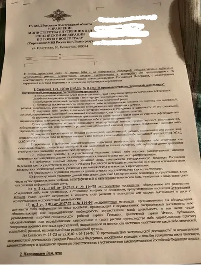 В Волгоградской области силовики дважды выдали предостережение о «недопустимости осуществления экстремистской деятельности» активистке, которая организует митинг против блокировки телеграм 10 марта а