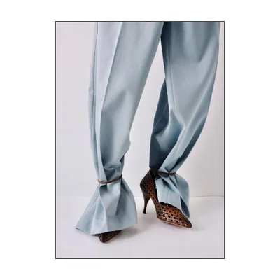Туфли Miu Miu — плетеная кожа, вытянутый мыс и тонкий каблук, который делает силуэт собранным. Коричневый оттенок и ажурная фактура добавляют паре глубину: они выглядят легко и в то же время точно. К