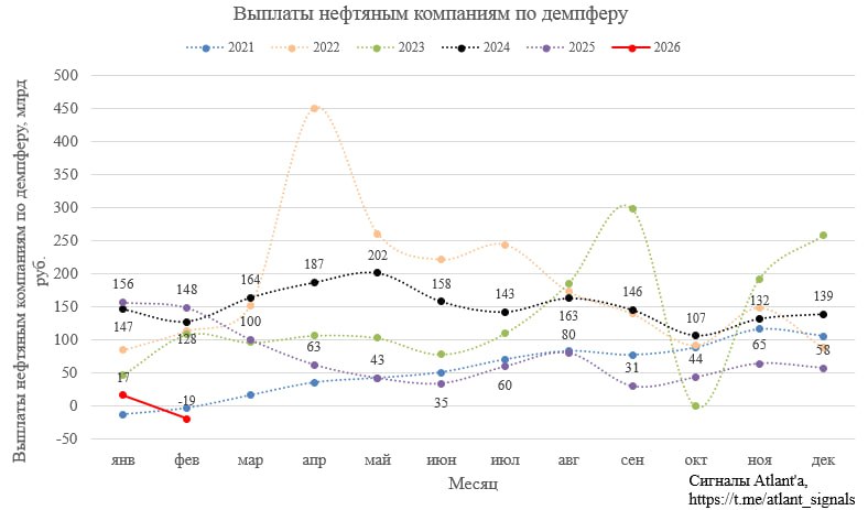 ❗️Нефтяные компании впервые за 5 лет в феврале 2026 года заплатили в бюджет РФ 18,8 млрд руб по топливному демпферу — данные Минфина. 📌Цены на топливо стали дороже, так что нефтяникам придется раско