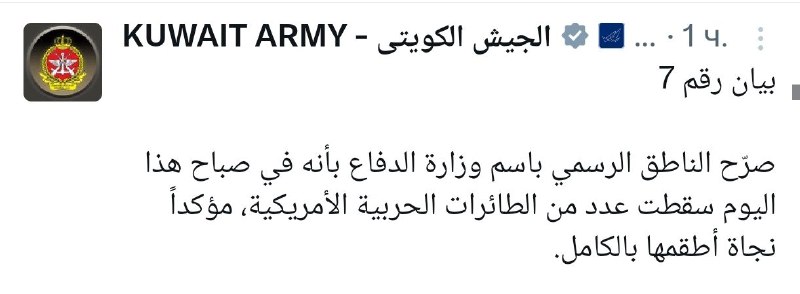 Минобороны Кувейта заявило, что сегодня утром было сбито несколько военных самолетов армии США. А показали только один 😏 Подписаться на канал | 📲 MAX Мы в ВКонтакте
