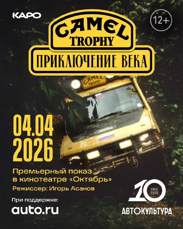 Премьера «Camel Trophy: приключение века» — новый документальный фильм проекта «Автокультура» и режиссера Игоря Асанова в кинотеатре! 4 апреля состоится долгожданный премьерный показ в «Октябре» — в