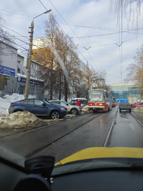 🔴На Руднева остановлено движение трамваев из-за припаркованного автомобиля