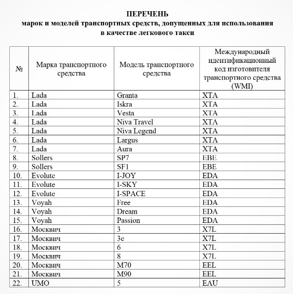 «Перечень марок и моделей транспортных средств, допущенных для использования в качестве легкового такси» опубликован на сайте Минпромторга России