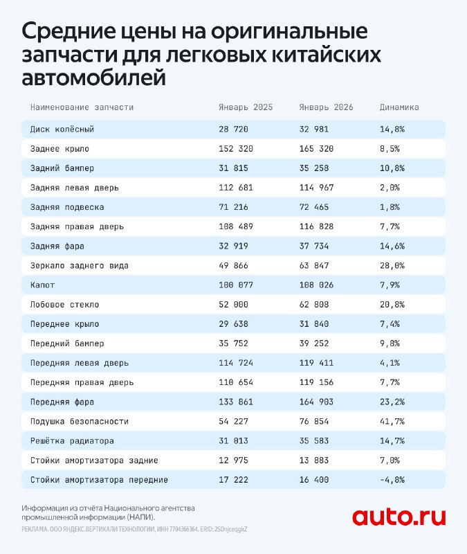 В России подорожали запчасти на «китайцев» 🔴В большей в цене прибавили подушки безопасности — на 41,7%. 🔴Ощутимо увеличилась и средняя стоимость зеркала заднего вида — на 28%, передней фары — на 2