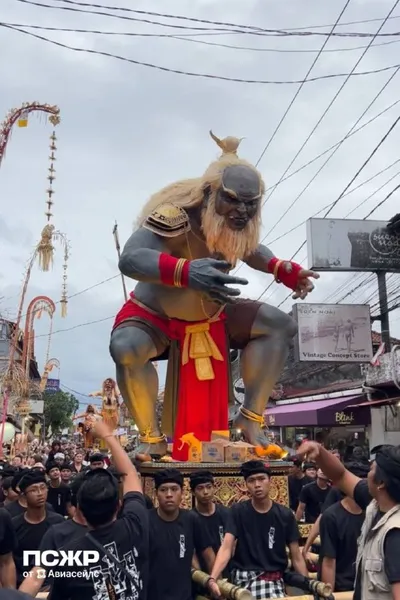 Ого-Ого Это название праздничного парада на Бали, для очищения острова от злых духов, который пройдёт сегодня. Балийцы делают фигуры чудовищ из папье-маше и устраивают шествие с песнями и национальны