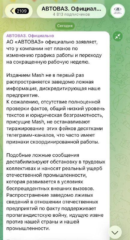 АвтоВАЗ снова переходит на четырёхдневку из-за рухнувших продаж — Mash. Издание утверждает, что склады переполнены машинами, а зарплаты сотрудников скоро упадут. В ответ производитель обвинил Mash во