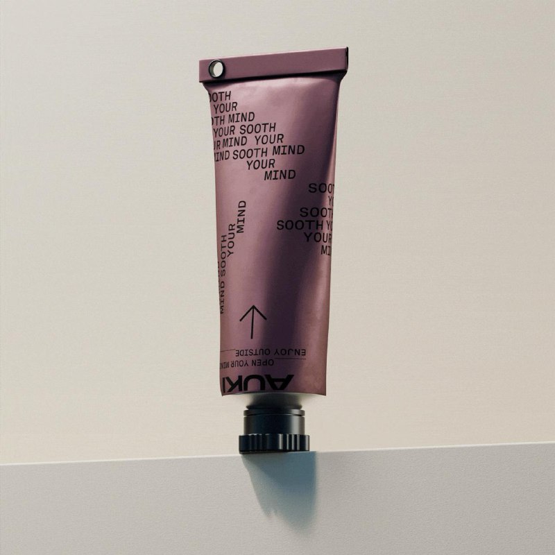 Упаковка средств по уходу за кожей финской марки AUKI Минималистичный дизайн тюбиков основан на экспериментах с типографикой и простых пиктограммах. Из-за неожиданных поворотов текста и повторяющихся