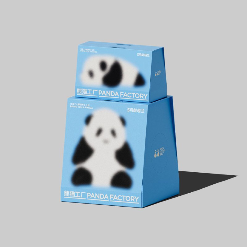 Упаковки реалистичных плюшевых панд Panda Factory Заблюренные иллюстрации намекают на то, что производитель как бы стёр грань между плюшевой игрушкой и реальной пандой. Размытость не мешает считывать
