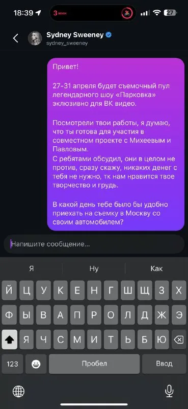 Артём Павлов попросил Сидни Суини на новый съемочный пул «Тачки звезд». Продюсерская работа ведется, хлеб не зря жуется.
