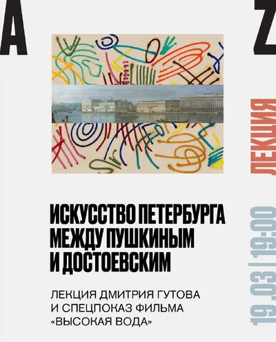 «Искусство Петербурга между Пушкиным и Достоевским» ▫️19 марта, четверг В Музее AZ состоится интереснейший вечер — лекция Дмитрия Гутова и показ документального фильма Юлии Бобковой «Высокая вода».