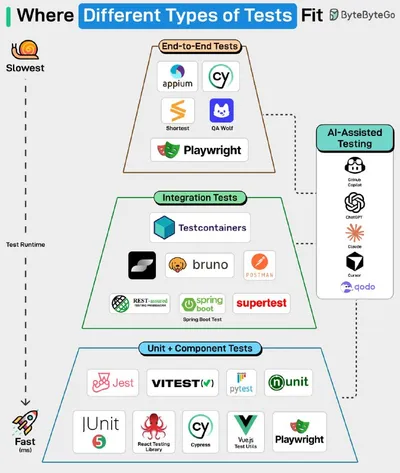Писать код сейчас легко, а вот тестировать — сложно. Давайте посмотрим, где именно находятся разные виды тестов и какую роль они играют. ⬇️⬇️⬇️