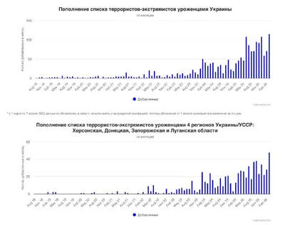 Март оказался рекордным по числу добавленных украинцев 😠 В марте в перечень террористов-экстремистов было добавлено рекордное число уроженцев Украины – 115 человек. Это почти на два порядка превышае