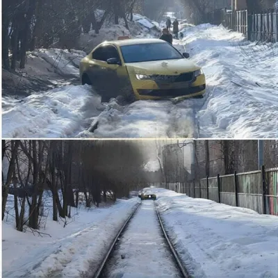 🤔Такси остановилось в снегу на ж/д путях в Железнодорожном напротив суда. По предварительным данным, водитель автомобиля спит внутри. Это случайно не Даниэль из фильма такси 😂