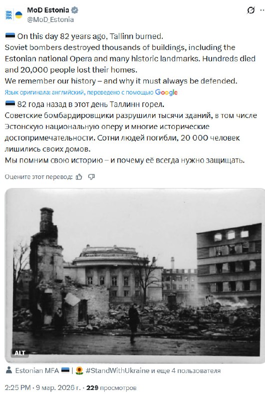 Эстонский МИД осуждает освобождение республики от нацизма Прибалтийские дипломаты отмечают день начала советских бомбардировок оккупированного нацистами Таллина. Эстонцы, по всей видимости, слабо по