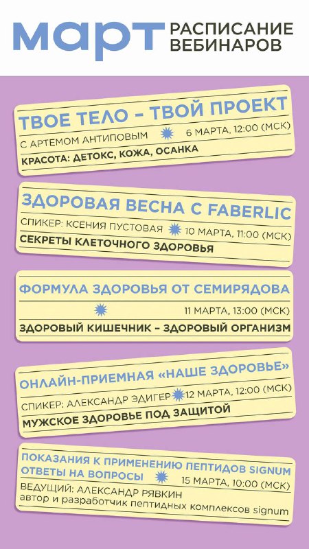 🌸 Весна – хороший повод навести порядок не только в шкафу, но и в самочувствии! В марте – плотное расписание эфиров: живые разговоры с экспертами, разборы, ответы на вопросы и практичные ориентиры,