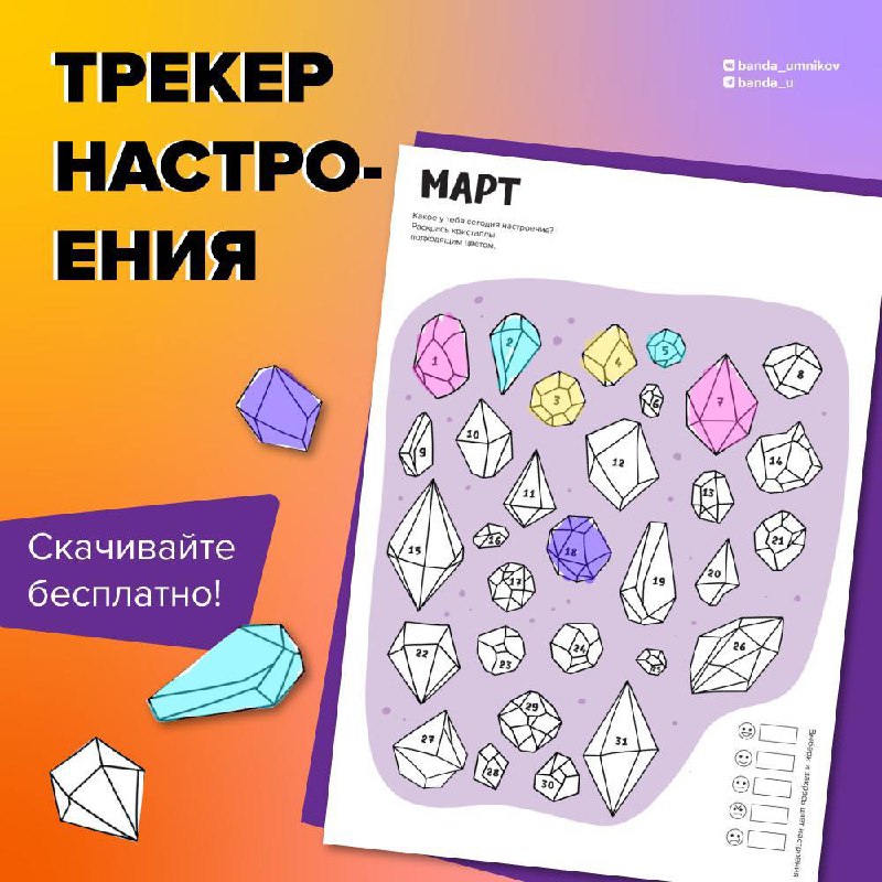 Трекер настроения на март 🌸 Заполняйте трекер сами и привлекайте ребёнка: это отличный способ оценить прошедший день и эмоциональное состояние, не задавая вопроса «Как дела?» 😉 Скорее скачивайте ш