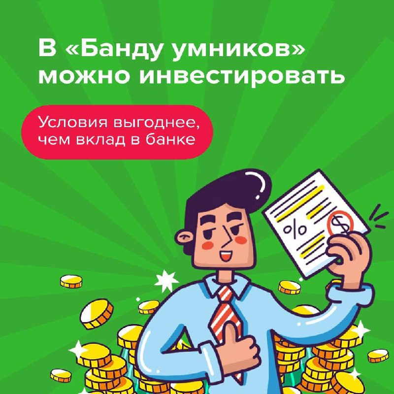 Инвестируйте и зарабатывайте вместе с «Бандой умников» 🤩 В «Банду умников» можно инвестировать! Условия лучше, чем вклад в любом банке. Всё официально. А теперь чуть подробнее 👇 В 2025 году из-