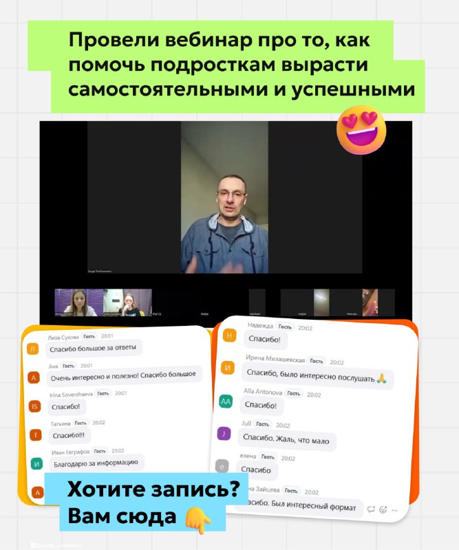 «Стану блогером — буду зарабатывать миллионы!» 💸 Запись вебинара с Сергеем Пархоменко уже доступна! 😊 В пятницу мы провели вебинар для родителей подростков! 🔥 Зарегистрировалось почти 400 человек