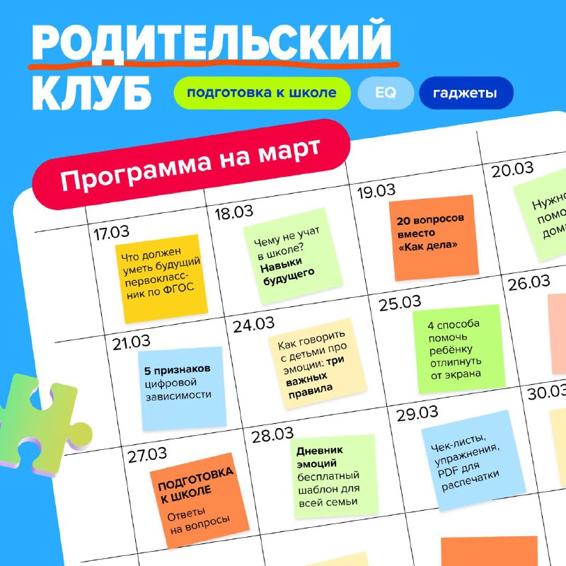 Родительский клуб в марте 🍃 Друзья, мы открываем набор в новый месяц Клуба! Подготовка к школе: чему учить уже сейчас? Как говорить с детьми про эмоции? Как понять, что у ребёнка зависимость от гадж