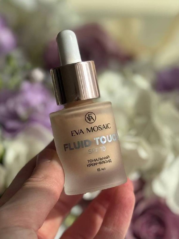 Тональный флюид Eva Mosaic хорош, но не до конца. Текстура легкая, флюидная, ложится аккуратно на кожу с нежным натуральным финишем без жирного блеска. На коже не ощущается совсем и хорошо выравн